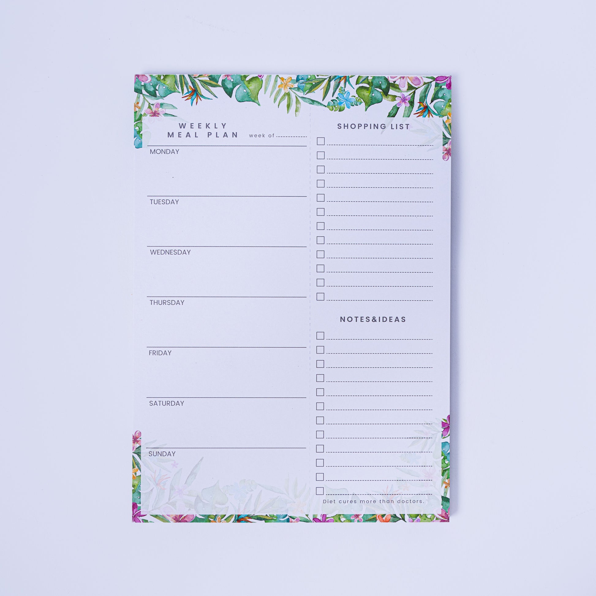 Plan your week effortlessly with this beautifully designed Magnetic Weekly Meal Planner Notepad. Featuring a soft botanical border with watercolor florals and greenery, this pad brings calm and clarity to your kitchen routine.